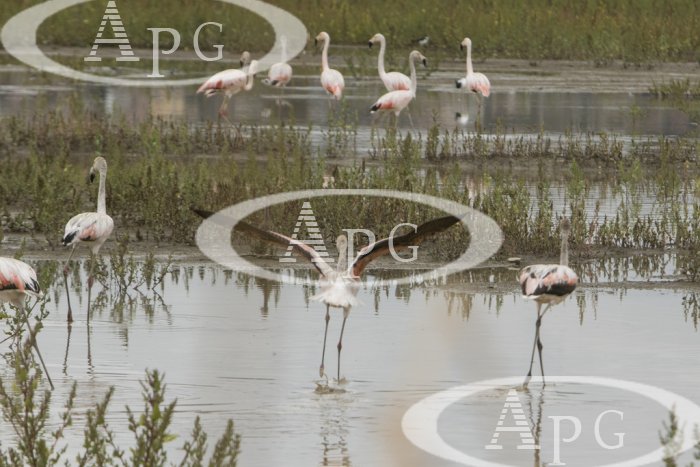 Luego de una semana de lluvias, flamencos rosados disfrutan del agua que llegó a la laguna Alalay.