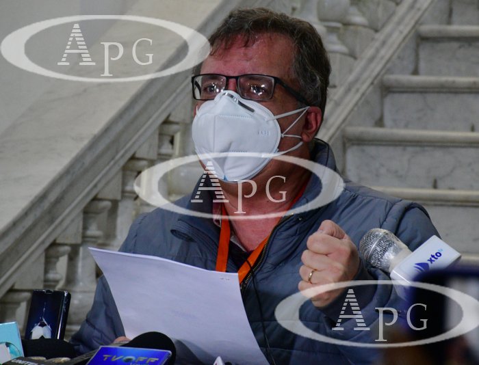 El diputado y jefe de bancada, Carlos Alarcón, en conferencia de prensa hace referencia a la carta y documentación sobre los respaldos presentados a la objeción contra la designación del Procurador del Estado, enviadas al vicepresidente del Estado, David Choquehuanca.