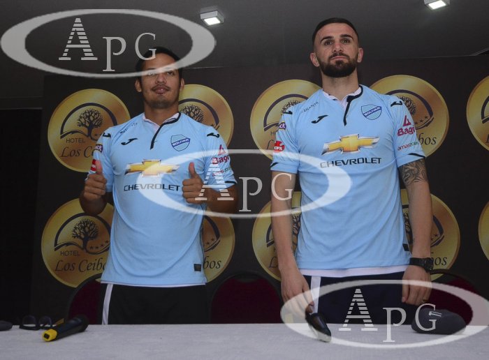 El mediocampista Leonel Justiniano y el delantero albanés Armando Sadiku fueron presentados como refuerzos del club Bolívar. FOTO/Reynaldo VARGAS/APG