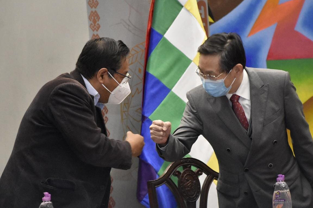 En la oportunidad, Arce recordó una conversación telefónica que sostuvo con el jefe de Estado de la República Popular China, Xi Jinping, para que Bolivia adquiera las vacunas Sinopharm, por su prestigio, calidad y efectividad contra el virus.