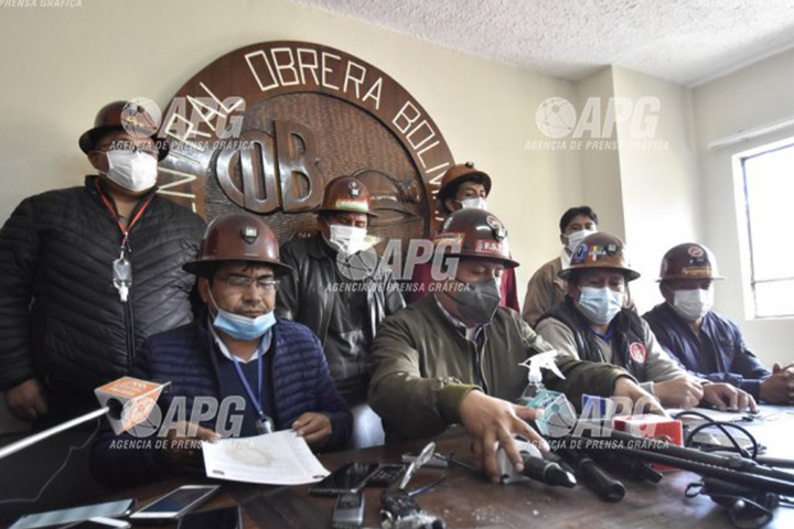 “Rechazamos la postura de los colegios médicos que se opone a la Ley de Emergencia Sanitaria cuando establece que las vacunas son gratuitas para el pueblo, regula y controla los precios de los medicamentos para que dejemos de ser víctimas de la especulación y pone un límite a las clínicas privadas que exigen depósitos previos y prohíbe el lucro”, dijo el secretario de Relaciones del sindicato minero, Víctor Hugo Loayza.
