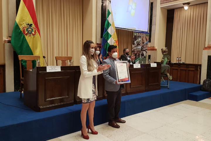 El alcalde de Torotoro, Eliodoro Uriona, recibió el reconocimiento por parte de la compañía internacional Intedya en un acto que se llevó a cabo en el Hall de la Vicepresidencia del Estado, en la ciudad de La Paz.