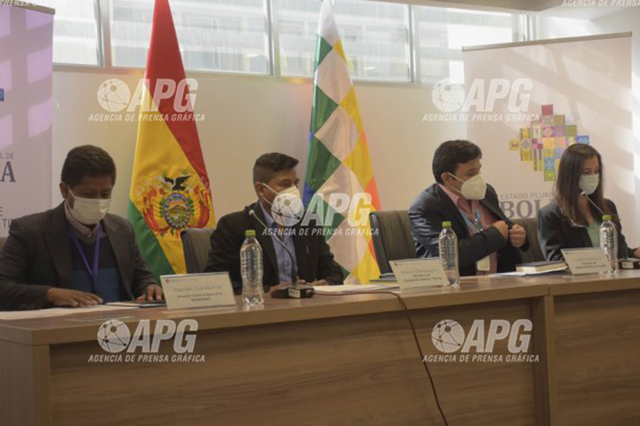 La firma del convenio contó con la presencia del ministro de Hidrocarburos y Energías, Franklin Molina, y del titular de Desarrollo Rural y Tierras, Edwin Characayo.
