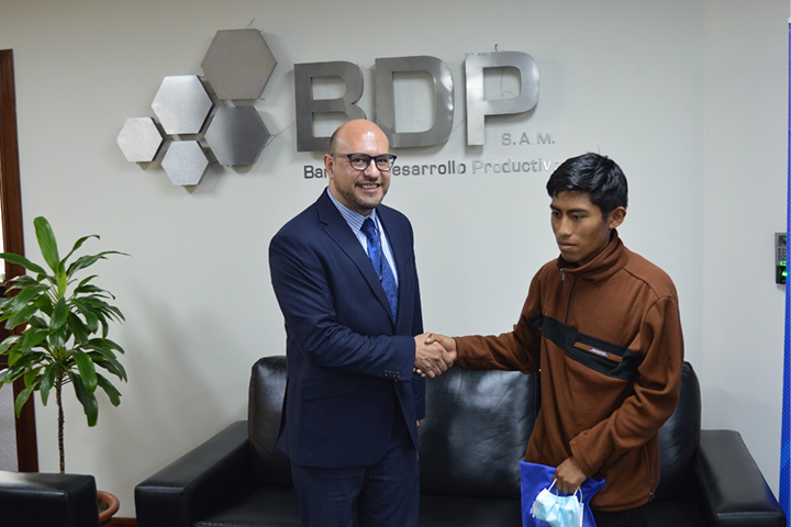 “Apoyamos iniciativas que promueven el desarrollo productivo de los productores y emprendedores, especialmente aquellas que sustituyen importaciones. Apoyaremos a Limbert con los diversos servicios no financieros que oferta el banco, como mejorar su tractor y una vez que se tenga un prototipo avanzado, le apoyaremos a construir su modelo de negocio a través de nuestro espacio de mentoría (BDP Lab), para finalmente financiar su emprendimiento y pueda cumplir sus sueños de seguir construyendo más tractores y otra maquinaria para mejorar la productividad de otros productores de Patacamaya”, afirmó Zabala, tras un encuentro con Guachalla, en la Oficina Nacional del BDP.