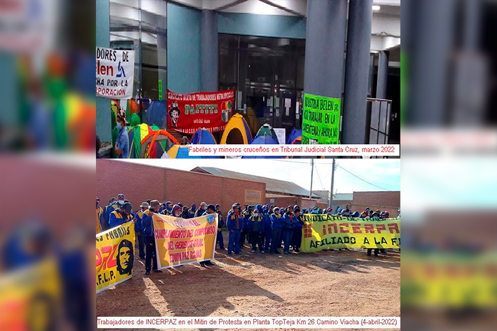 Desde el 3 de octubre 2020, los despedidos de Larabish La Paz exigen ser reincorporados porque la empresa no pudo demostrar quiebra legal. El 24 de marzo 2022, fabriles y mineros cruceños tomaron el acceso al Tribunal Judicial cruceño ante nula cobertura mediática.
