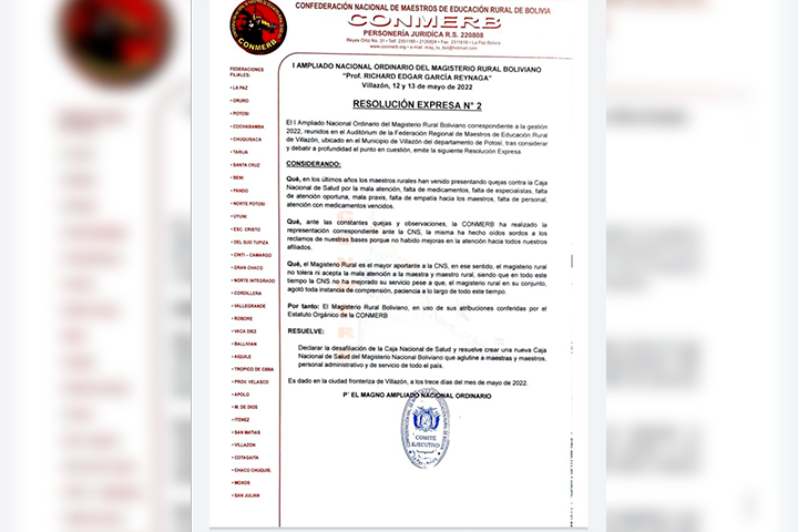 El dirigente del Magisterio, explicó que se decidió la inmediata desafiliación de la Caja Nacional de Salud, de 70 mil maestros que junto a sus familiares se está hablando de 200 mil personas .