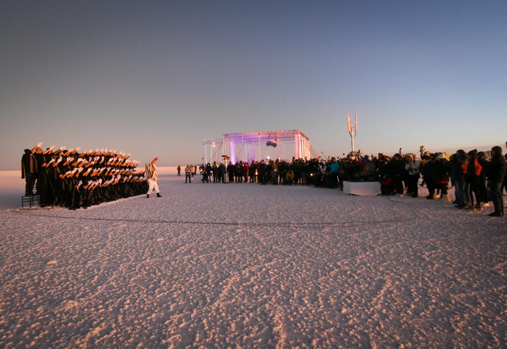La experiencia superó las expectativas de los asistentes cuando Sadeck Waff, coreógrafo francés mundialmente conocido, irrumpió en el evento con una espectacular y original coreografía con 60 bailarines, formando la nueva imagen de BancoSol, en la inmensidad del Salar.