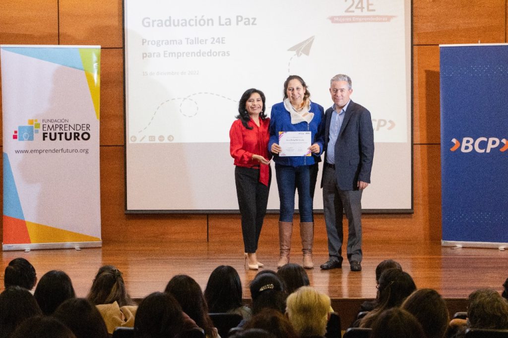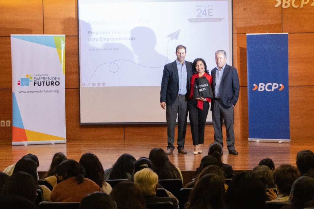 La Paz, 19 de diciembre de 2022.- Gracias a la alianza firmada el año pasado entre el Banco de Crédito BCP y Fundación Emprender Futuro, este jueves 15, al menos 2.500 emprendedoras capacitadas durante 2022 se graduaron en Educación Financiera para la Gestión de Negocios. El trabajo comprometido de ambas instituciones ha derivado en la llegada a mil mujeres en 2021, que sumadas a las de este año llegan ya a 3.000.