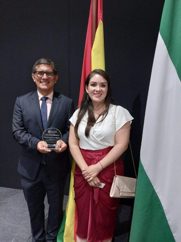 Santa Cruz, diciembre de 2022. La noche de este lunes 19 de diciembre, en su acto de colación 2022, la Fundación del Instituto de Formación y Capacitación Laboral (Infocal), otorgó un reconocimiento a Nestlé Bolivia,  por su aporte en la labor de mejorar las oportunidades de empleo para los jóvenes formados en especialidades técnicas.