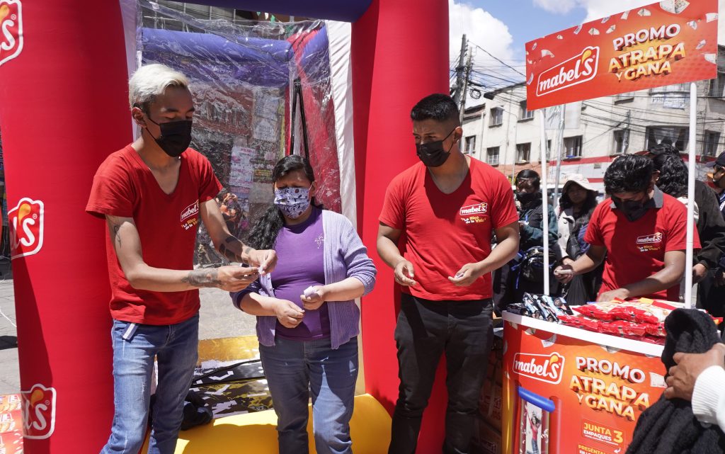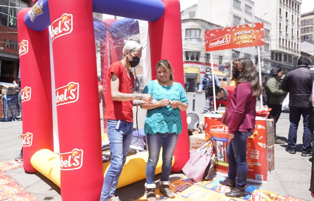 Este viernes pasado en el centro de la ciudad de La Paz, Mabel’s puso en marcha la ruta de la Cabina Ganadora “Atrapa y Gana” y decenas de consumidores vivieron la experiencia de ganar premios al instante. La actividad llegará además a los lugares más populares de La Paz y El Alto, como la calle Garcilazo, la plaza San Francisco, la avenida Tiahuanacu, la Feria 16 de julio y los más concurridos supermercados de la zona sur.