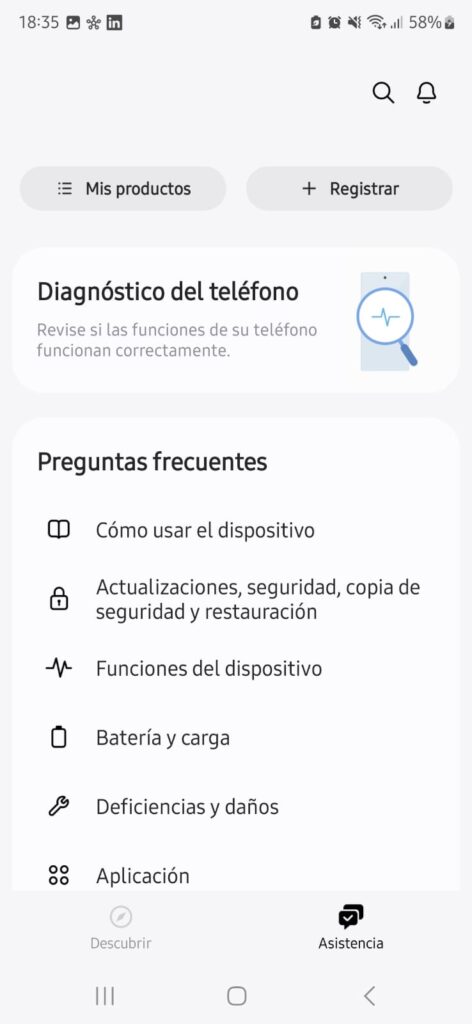 Además, la aplicación cuenta con una sección de Preguntas Frecuentes que ofrece respuestas rápidas y detalladas sobre temas como problemas con la batería o gestión de aplicaciones. Para problemas más complejos, la app facilita la comunicación directa con expertos de Samsung, quienes están disponibles para guiar a los usuarios en la resolución de problemas técnicos.